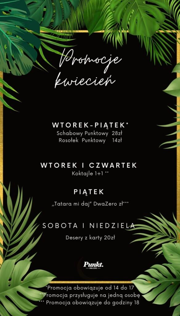 zniżki na drinki, klasyki z twistem, małe niespodzianki poza kartą.